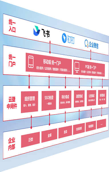 对协作平台提供支持服务,,支持企业应用与协作平台对接,,,包含组织同步、、、消息集成、、、待办集成等。。。支持目前主流的协作平台:钉钉、、企微和飞书。。